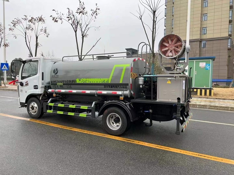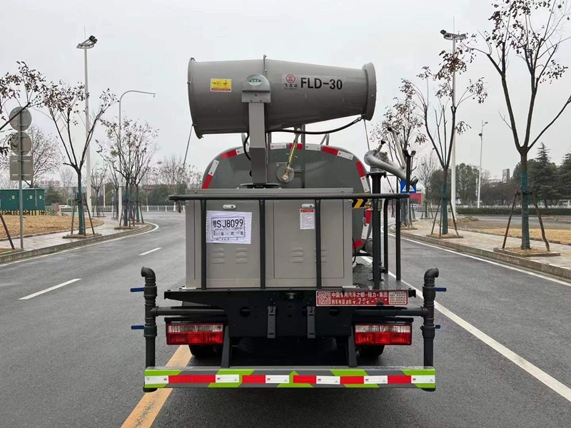 5噸霧炮灑水車專用功能配置:罐體實(shí)際容積約為5立方米,采用武鋼優(yōu)質(zhì)碳鋼板卷壓成型,自動(dòng)焊接。配備專用灑水泵,自吸自排,前噴后灑、側(cè)噴、后工作平臺(tái)及灑水高壓炮。灑水泵自吸高度為6米左右,整車灑水寬度14米左右,后工作平臺(tái)高壓水槍上下左右360°旋轉(zhuǎn)可調(diào)成:直沖狀、大雨、中雨、小雨、有效射程≥28米,可整車帶接頭、水位計(jì),自流閥。后工作平臺(tái)主管道有一個(gè)一寸的澆花接口,附送2根3米水管,1個(gè)爬梯,兩側(cè)及后保險(xiǎn)杠。