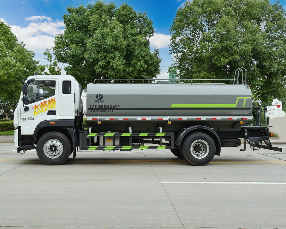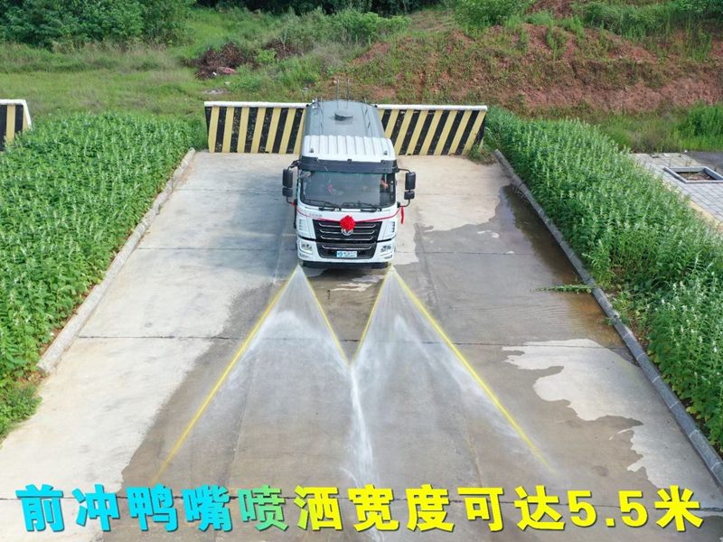 專用功能說明: 用功能配置:罐體實際容積約為14.2立方米,采用武鋼優(yōu)質(zhì)碳鋼板卷壓成型。配備專用灑水泵,自吸自排,前噴后灑、側(cè)噴、后工作平臺及灑水高壓炮。灑水泵自吸高度為6米左右,整車灑水寬度14米左右,后工作平臺水炮可調(diào)成:直沖狀、大雨、中雨、小雨、毛毛雨,有效射程≥28米,整車帶接頭、水位計,自流閥。后工作平臺主管路帶1寸澆花接口,附送2根3米水管,1個爬梯,兩側(cè)及后保險杠。