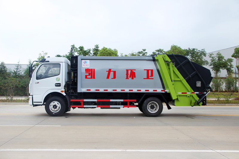 東風(fēng)多利卡壓縮式垃圾車,容積6~8立方米,東風(fēng)D7多利卡單排駕駛室,6檔變速箱,朝柴150馬力發(fā)動(dòng)機(jī),前橋2.5噸,后橋5噸,192mm變截面車架,7.50R16鋼絲胎,帶斷氣剎、ABS。
