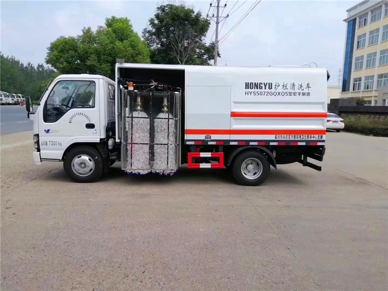 湖北宏宇專用汽車有限公司生產(chǎn)的“虹宇牌”HYS5072GQXQ5型護(hù)欄清洗車:國(guó)五排放標(biāo)準(zhǔn)(國(guó)六排放及新能源天然氣均有現(xiàn)車)水箱容積高達(dá)4m3,可連續(xù)作業(yè)4小時(shí),采用最先進(jìn)的液壓控制護(hù)欄清洗臂系統(tǒng),水平方向可180°升縮,上下方向可180°調(diào)節(jié),前置滾刷可進(jìn)行180°旋轉(zhuǎn),可以輕松應(yīng)對(duì)各種形式的護(hù)欄