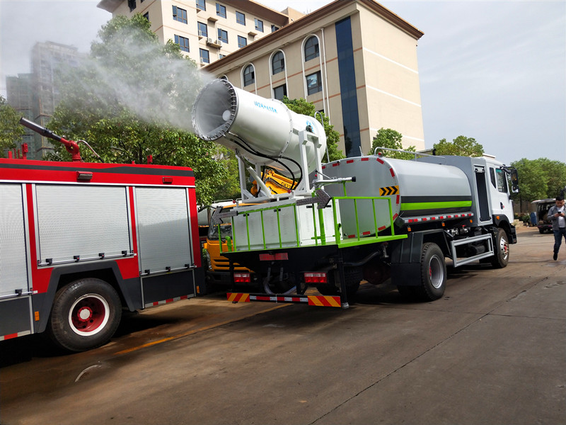 抑塵車吸程≧7米,灑水寬度≧14-16米,射程≧25-40米,引水時(shí)間<5min,流量60m3/h。前沖(噴)、后灑、帶側(cè)噴(花灑)、帶后工作平臺(tái)、平臺(tái)上安裝綠化灑水高炮(炮噴射形狀可調(diào)節(jié):直沖、大雨、中雨、毛毛雨、霧狀、可連續(xù)調(diào)節(jié),360°旋轉(zhuǎn)),配消防接口,自流閥,濾網(wǎng),帶自吸自排功能。配備大功率專用灑水泵,泵可自吸自排,安裝過濾網(wǎng),帶消防接口,可通過消防栓進(jìn)水,帶自流閥,此車尾部加裝大功率農(nóng)藥噴灑炮,噴灑狀態(tài)霧狀,有效射程15-45米,外部平臺(tái)帶獨(dú)立的機(jī)組。