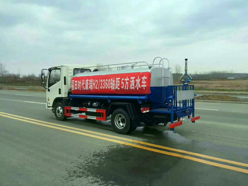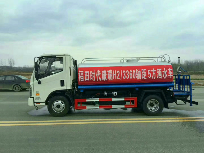 福田時代5噸灑水車,罐體實際容積5立方,凡是購買該車的用戶,灑水車廠家立送7天臨時牌照一份,灑水車的所有功能配件,均享有一年的質(zhì)保期,質(zhì)保期內(nèi)免費更換,