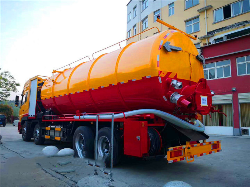 東風(fēng)天龍后八輪高壓清洗吸污車:采用國產(chǎn)優(yōu)質(zhì)碳鋼板制作,罐體采用一次成型而成,鋼板厚度8mm厚,封頭8mm厚,采用通潔或者品浮高壓清洗泵,大功率國產(chǎn)水循環(huán)吸污泵,加裝液壓卷盤,配60-100米高壓管,配10個多功能耐磨沖頭,尾部帶一個自流口,帶視糞窗,洗手裝置,吸污罐帶液壓頂起裝置,可以選擇吸污罐后蓋液壓打開或者不打開,配8米吸污管一根。東風(fēng)天龍清洗吸污車底盤配置:東風(fēng)天龍豪華駕駛室,康明斯發(fā)動機270馬力,帶增壓,9檔變速箱,5噸前橋,10噸雙后橋,方向助力,斷汽剎,1100鋼絲胎(含一條備胎),原裝空調(diào)