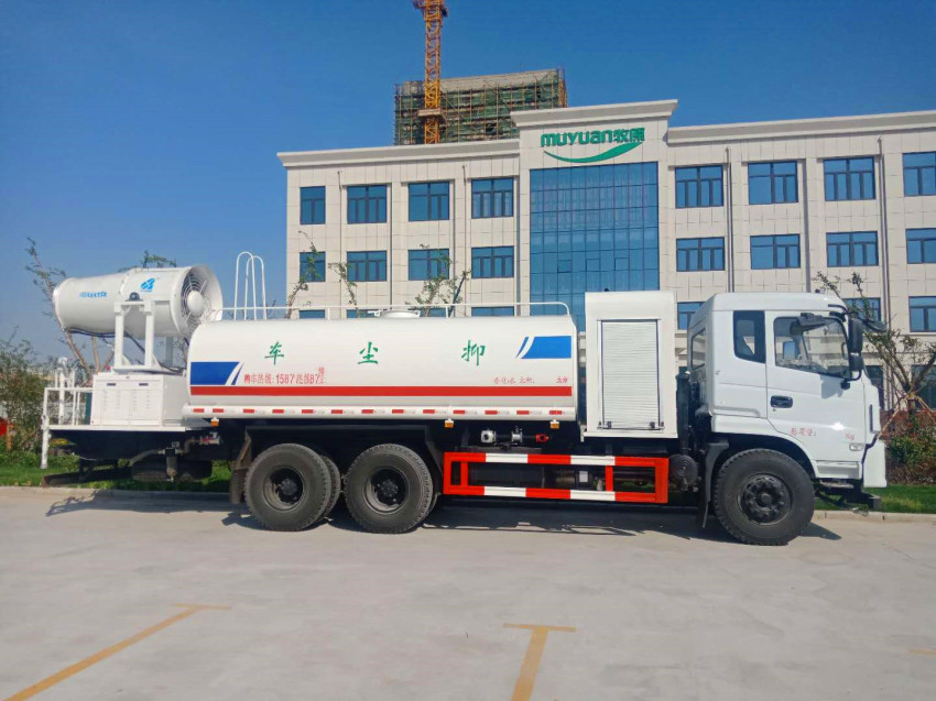 專用裝置為抑塵霧炮,用于城市抑塵,整車長度/前懸/軸距/后伸的對應關系為(mm):8870/1440/3950/920,9120/1440/4200/920,9420/1440/4500/920,9620/1;側防護及后下部防護裝置均采用Q235A材質,均采用焊接連接,后下部防護尺寸:120×50(mm),離地面高度500mm.裝備ABS,型號/生產廠家:3631010-C2000/東科克諾爾商用車制動系統(tǒng)(十堰)有限公司,ABS-E 4S/4M/威伯科汽車控制系統(tǒng)(中國)有限公司.當抑塵距離為60米及80米抑塵霧炮時,后伸為720mm,當抑塵距離為80米和100米抑塵霧炮時,后伸為920mm.隨底盤選裝駕駛室.選裝不帶顆粒捕捉器圖片.