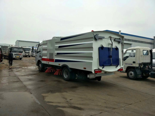 本公司產(chǎn)品設(shè)計(jì)新穎造型美觀:合理的整車長、寬、高配比,使整車造型美觀大方,耳目一新。掃路車采用矩形結(jié)構(gòu)的清水箱、垃圾箱,采用不銹鋼瓦棱結(jié)構(gòu)設(shè)計(jì),不但使外觀造型新穎,更增強(qiáng)了垃圾箱的強(qiáng)度和剛度,減輕自重。采用獨(dú)創(chuàng)的鎖緊技術(shù),使垃圾箱后門密封效果更好。垃圾箱內(nèi)還設(shè)有高壓水清洗裝置,卸料時(shí)可幫助卸出垃圾,清洗垃圾箱內(nèi)壁。