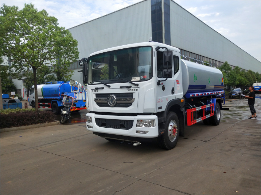 灑水車前裝有鴨嘴形噴嘴或圓錐形沖嘴,后面裝有圓柱形灑水噴嘴或蓮蓬頭噴嘴,后部有工作平臺,裝配有水炮。后部還可裝8個噴嘴