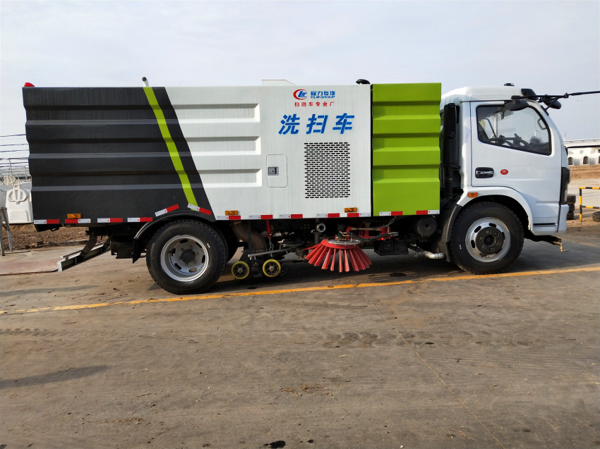 掃路車主要是對(duì)路面進(jìn)行清掃和垃圾收集,通過(guò)掃刷將垃圾清掃到吸盤處吸進(jìn)垃圾箱從而對(duì)路面進(jìn)行清掃。在清掃的時(shí)候,由掃盤上部弧形噴嘴噴霧降塵。掃路車還可以加裝灑水前沖后灑功能,用來(lái)沖洗路面。