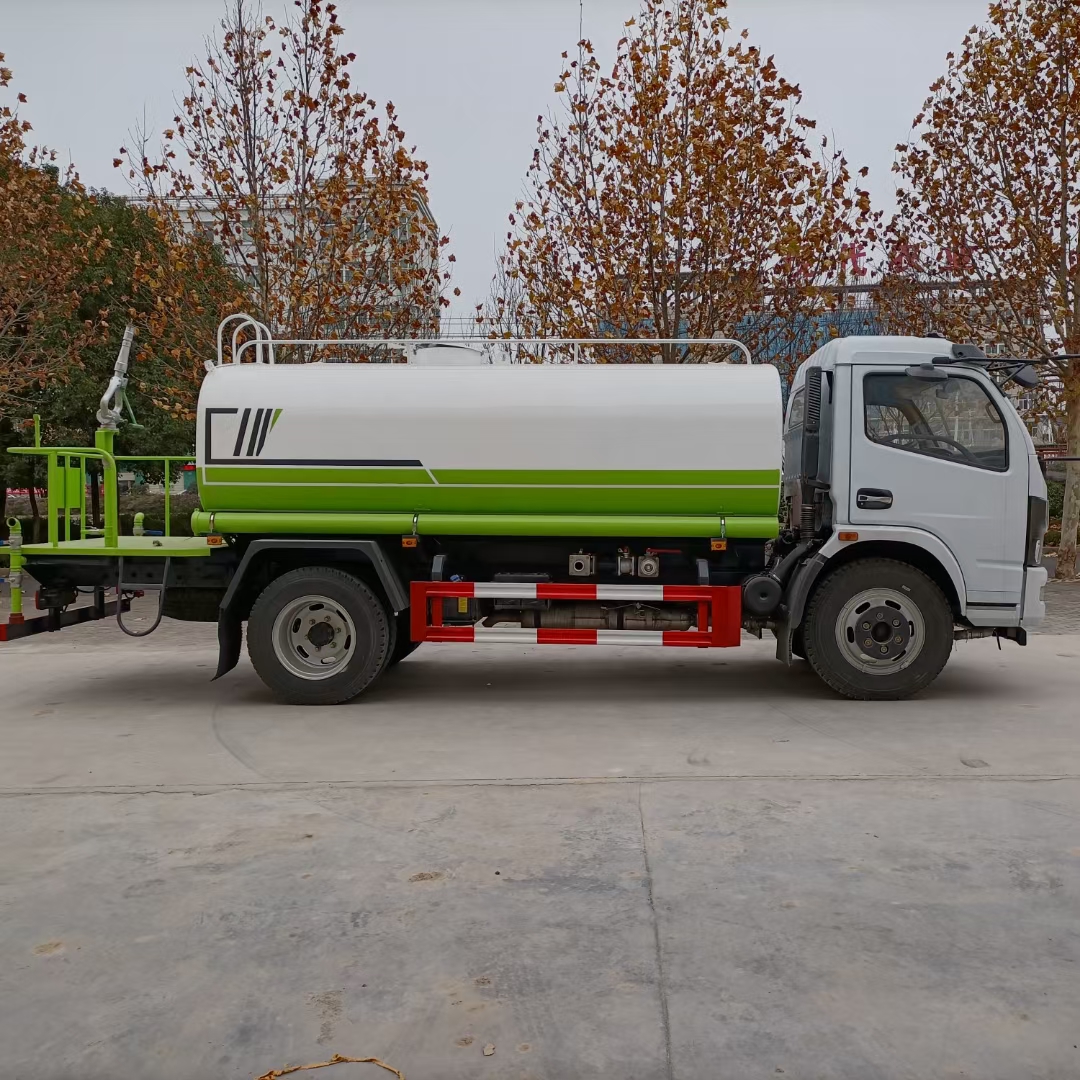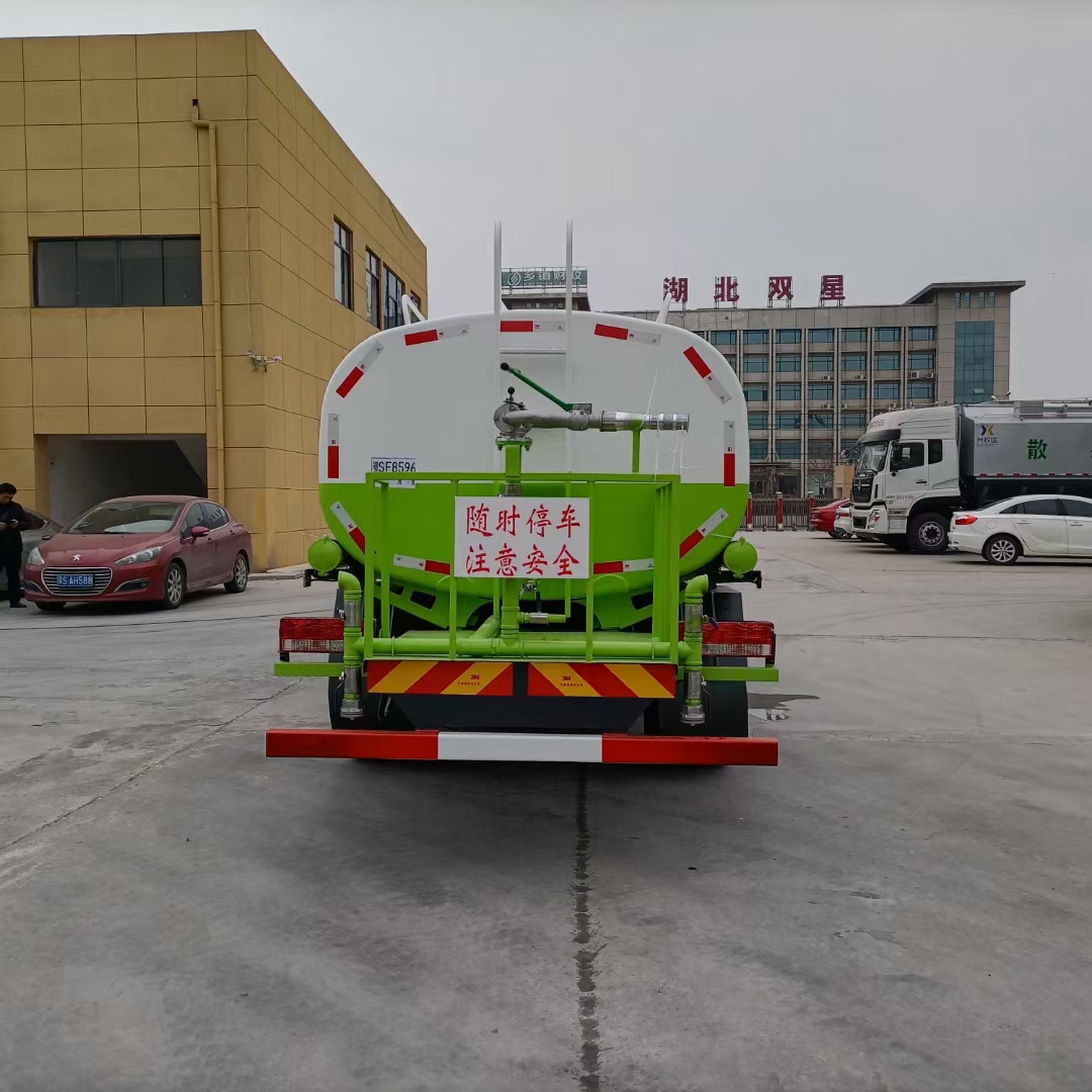 4.灑水車前噴頭位置較低,靠近地面,噴灑壓力較大,可用于沖洗路面;后噴頭位置較高(灑水車后噴頭一般左右各安裝一個),灑水面較寬,可用于公路施工灑水,使用后噴頭時,應將前噴管關閉;使用可調噴頭灑水時,灑水寬度可根據(jù)需要調整。灑水寬度越寬,中間重疊量越少,灑水密度越均勻。