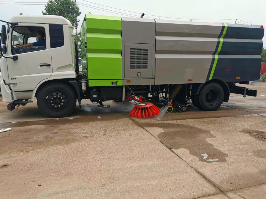 東風天錦洗掃車具有路面清洗、路面清掃路緣和路緣石立面洗刷、低壓沖洗、噴霧 除塵等多功能。有“全洗掃”、 “左洗掃”、 “右洗掃”、 “全掃”、 多種作 業(yè)模式可選擇。選擇“全洗掃”模式清洗廣場和路面,清洗效率效果好,洗 凈率達 95%以上。選擇“左洗掃”或“右洗掃”模式清洗路面和路緣 。需要進 行路面清掃或路面保潔作業(yè)時,可選擇掃路模式。需要噴霧除塵時,可開啟噴霧裝置,進行噴霧除塵作業(yè)。可以像灑水車一樣對路面進行低壓沖洗作業(yè)。