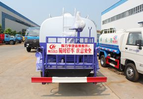 灑水車性能簡介:吸程≧7米,灑水寬度≧14-16米,射程≧25-40米,引水時間<5min,流量60m3/h。前沖(噴)、后灑、帶側噴(花灑)、帶后工作平臺、平臺上安裝綠化灑水高炮(炮噴射形狀可調節(jié):直沖、大雨、中雨、毛毛雨、霧狀、可連續(xù)調節(jié),360°旋轉),配消防接口,自流閥,濾網,帶自吸自排功能