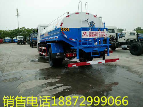 東風(fēng)12噸灑水車標(biāo)配前沖、后灑、側(cè)噴、高位花灑、后工作平臺、360度可調(diào)節(jié)綠化水炮,自流閥、濾網(wǎng)、消防接口(可連接消防栓取水,可作應(yīng)急消防用),罐前量管(觀察罐內(nèi)水位)、罐后爬梯、罐上簡易罐口、帶簡易護(hù)欄、罐側(cè)雙炮筒、炮筒內(nèi)3米長鋼絲塑膠抽水管兩根,罐體表面雙層油漆工藝,防銹、耐腐蝕,其余由廠家標(biāo)配。