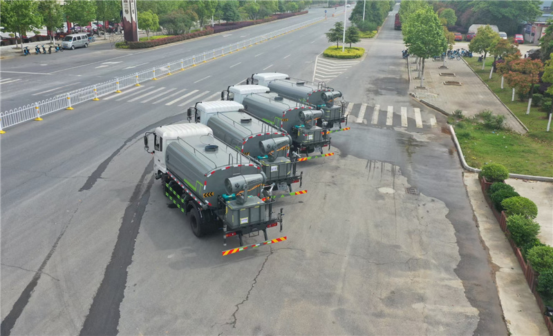 東風12噸灑水車-抑塵車-霧炮車,玉柴165匹馬力國六發(fā)動機 玉柴200匹馬力發(fā)動機 軸距3950,法士特8檔變速箱, 900R20鋼絲輪胎,電動玻璃, 中控鎖,ABS,原廠空調,多功能方向盤,氣囊座椅,罐體采用武鋼優(yōu)質鋼材制作,專用功能為:前沖后灑,帶側噴, 罐體后帶工作平臺,平臺上安裝綠化灑水高炮,帶專用灑水車水泵,帶自流閥,帶消防接頭,平臺安裝30米霧炮, 配8千瓦柴油發(fā)電機,霧炮可以遙控此車為國六車型,發(fā)國六上戶手續(xù),上戶免購置稅