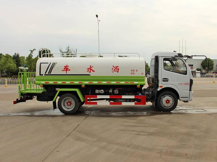 灑水車具有前沖后灑、側(cè)噴(更換噴頭后變?yōu)閭?cè)花灑)、后置式工作平臺(tái)(帶踏梯,四周有安全護(hù)欄)、平臺(tái)上設(shè)置有高壓水炮(可360°旋轉(zhuǎn),可調(diào)成柱狀射程28米,也可調(diào)成霧狀射程14米,可調(diào)成:直沖狀、大雨、中雨、小雨、毛毛雨),整車灑水寬度大于14米.配備大功率灑水泵,取力器,雜物過(guò)濾網(wǎng),通用65型消防接口(可通過(guò)消防栓加水)、1套自流球閥系統(tǒng)(可自吸自排,吸程6米),2根引水鋼絲膠管(帶陰陽(yáng)快速接頭),配鎖,水位計(jì),作業(yè)高音喇叭.兩側(cè)及后加強(qiáng)型保險(xiǎn)杠,防滑爬梯,膠管儲(chǔ)存筒.