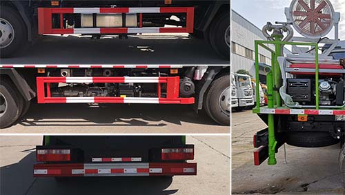 江淮牌抑塵車側(cè)防護(hù)及后下部防護(hù)均采用Q235A材質(zhì),均采用焊接連接,后下部防護(hù)尺寸:60×120(mm), 離地面高度440mm;2、ABS型號/廠家為:VIE ABS-Ⅱ/浙江萬安科技股份有限公司, CM4XL-4S/4M / 廣州瑞立科密汽車電子股份有限公司.3、專用裝置為抑塵霧炮,用于城市抑塵.4、隨底盤選裝駕駛室. |