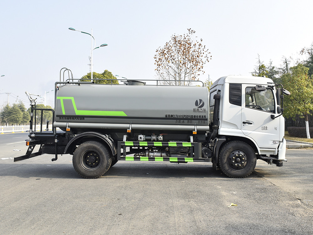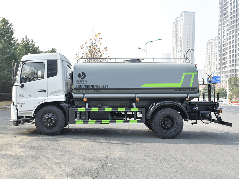 東風(fēng)天錦 12 噸灑水車產(chǎn)品標(biāo)配前噴(鴨嘴)、后沖、后灑、側(cè)噴、后置式工作 平臺,平臺上配置綠化水炮(可 360°旋轉(zhuǎn),既可以調(diào)成柱狀,也可 以調(diào)成霧狀,更可以調(diào)成直沖狀、大雨、中雨、小雨、毛毛雨),配 備優(yōu)質(zhì)大功率專用灑水泵(可自吸自排,可從河里或池塘抽水到罐體), 取力器,雜物過濾網(wǎng),消防接口,自流球閥系統(tǒng)、取力器、球閥、濾網(wǎng) 均為國家標(biāo)準(zhǔn)產(chǎn)品,主管道加粗,法蘭墊、法蘭盤加厚,大通徑球閥。 整體具備性能優(yōu)良安全可靠、效率高、流量大、維修方便等特點。