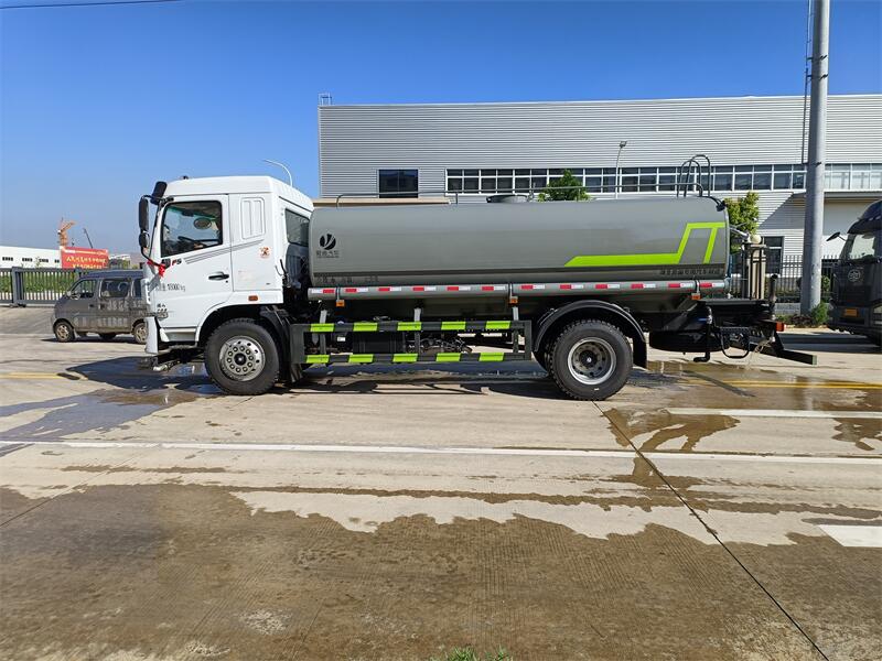 東風(fēng)15噸灑水車(chē)標(biāo)配前噴(鴨嘴)、后沖、后灑、側(cè)噴、后置式工作 平臺(tái),平臺(tái)上配置綠化水炮(可 360°旋轉(zhuǎn),既可以調(diào)成柱狀,也可 以調(diào)成霧狀,更可以調(diào)成直沖狀、大雨、中雨、小雨、毛毛雨),配 備優(yōu)質(zhì)大功率專(zhuān)用灑水泵(可自吸自排,可從河里或池塘抽水到罐體), 取力器,雜物過(guò)濾網(wǎng),消防接口,自流球閥系統(tǒng)、取力器、球閥、濾網(wǎng) 均為國(guó)家標(biāo)準(zhǔn)產(chǎn)品,主管道加粗,法蘭墊、法蘭盤(pán)加厚,大通徑球閥。 整體具備性能優(yōu)良安全可靠、效率高、流量大、維修方便等特點(diǎn)。