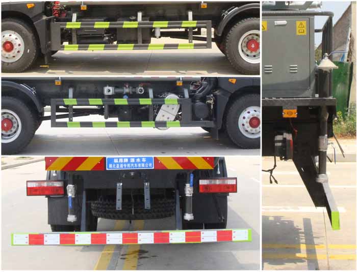 東風15噸灑水車產(chǎn)品標配前噴(鴨嘴)、后沖、后灑、側(cè)噴、后置式工作 平臺,平臺上配置綠化水炮(可 360°旋轉(zhuǎn),既可以調(diào)成柱狀,也可 以調(diào)成霧狀,更可以調(diào)成直沖狀、大雨、中雨、小雨、毛毛雨),配 備優(yōu)質(zhì)大功率專用灑水泵(可自吸自排,可從河里或池塘抽水到罐體), 取力器,雜物過濾網(wǎng),消防接口,自流球閥系統(tǒng)、取力器、球閥、濾網(wǎng) 均為國家標準產(chǎn)品