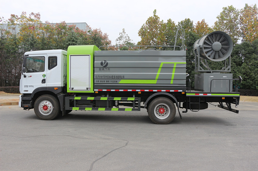東風(fēng)D9大型抑塵灑水車(chē) 整車(chē)型號(hào) CLT5181TDYEQ6A 型多功能抑塵車(chē) 2 發(fā)動(dòng)機(jī)型號(hào) YCS04200-68 3 發(fā)動(dòng)機(jī)馬力/功率 玉柴 200 馬力/147KW 4 發(fā)動(dòng)機(jī)排量 4156ML 5 變速箱 法士特 8 檔(帶高低檔) 6 輪胎規(guī)格 10.00 鋼絲胎 7 軸距 4500 8 總質(zhì)量 18000KG 9 整備質(zhì)量 8900KG 10 額定載質(zhì)量 8905KG 11 整車(chē)尺寸(長(zhǎng)×寬×高) 8.68*2.5*3.8 12 罐體容積 12 方 13 燃料種類 柴油 14 排放標(biāo)準(zhǔn) 國(guó)六 15 水泵型號(hào) 60/90 16 罐體材質(zhì) Q235 碳鋼產(chǎn)品功能展示 前沖鴨嘴 后灑 后對(duì)沖 高炮 側(cè)噴 霧炮
