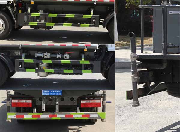 東風福瑞卡5方灑水車罐體約為 5 方,可加裝 30 型霧炮 2、邊燈帶電,罐體尾部上方標配 2 個紅色示寬燈, 3、標配前噴為鴨嘴直沖,標配后沖,用戶可根據自己的需求,來調 整對沖位置。 4、花紋防滑平臺,炮筒后蓋為定制型螺栓卡扣, 5、前噴、后沖、后灑、側噴,綠化高炮開關球閥均采用 50 大通經 不銹鋼球閥, 6、新式軸承式水炮,更加耐用, 7、40-50 型水泵, 8、防腐法蘭墊片, 9、鋁制后灑,不易炸開 10、罐體自動焊(美國林肯焊機及電源),拼板自動焊接,封頭環(huán) 縫焊接,無氣孔,焊縫美觀。 11、側護網、后保險杠、均為螺栓連接,方便拆卸,維修方便。 12、塑料擋泥板,替代鐵擋泥板,更加輕便,用螺栓連接,方便拆 卸。 13、前部、后部主管連接處為 6 孔圓法蘭,不易沖墊