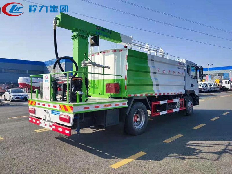上裝配置:罐體采用瓦楞方箱制作,材質(zhì)Q235,邊4底5,容積:12-15方,標(biāo)配大功率50/110水泵,萬(wàn)達(dá)液壓回轉(zhuǎn)機(jī)構(gòu),帶自動(dòng)回流,整車(chē)氣動(dòng)控制,駕駛室操作,箱頂2個(gè)1.5千瓦電機(jī),科普8千瓦發(fā)電機(jī)組,3個(gè)攝像頭(流量表,噴灑桿,整車(chē)尾部),駕駛室12寸彩色視頻可回放,液壓控制裝置,并配有液壓防沉淀攪拌裝置,電子流量計(jì),渦流噴射帶噴頭,也可選裝螺旋式不銹鋼噴頭,氣動(dòng)控制噴頭(一組控制4個(gè)噴頭),噴灑高度4.3米-5.2米,勾檔停車(chē)可感應(yīng)3米,自動(dòng)停噴,8個(gè)噴嘴,葉片式絞龍機(jī)構(gòu),可選裝灑水車(chē)功能(前部沖洗路面噴灑裝置,兩側(cè)面噴灑裝置,帶后部工作平臺(tái)、平臺(tái)上安裝綠化灑水炮(炮噴射形狀可調(diào)),可調(diào)直沖狀、大雨、中雨、毛毛雨,可連續(xù)調(diào)節(jié),射程可達(dá)28米,垂直吸程≤7米),帶消防接口、自流閥,可自吸自排。)、加裝氣控回流裝置