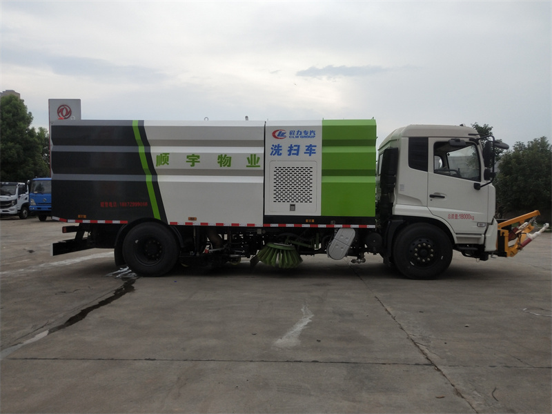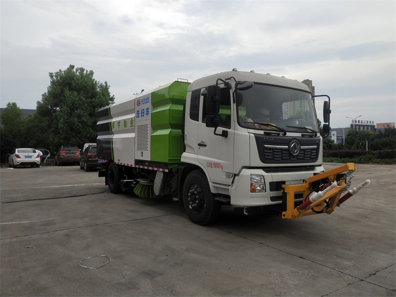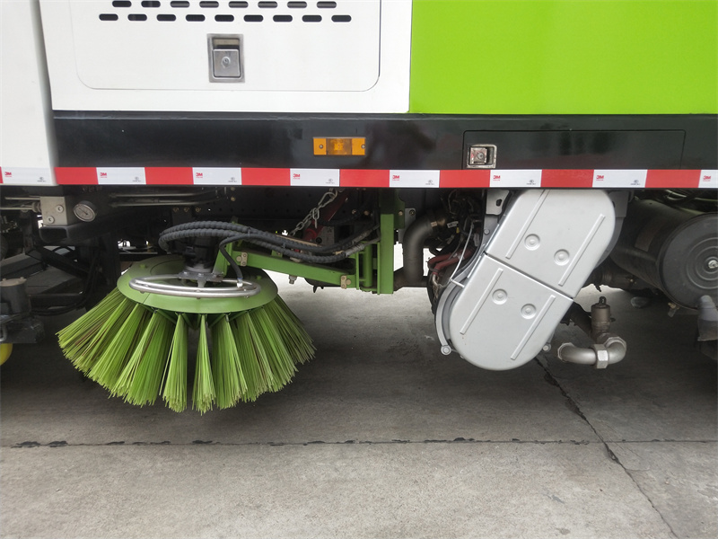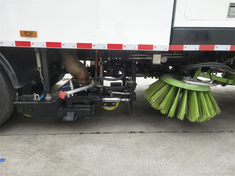 洗掃車采用中置兩刷盤,中置寬吸盤,配上具有防撞避障功能的V型高壓沖水架,組成一條大于3.5米的沖洗清掃帶。采用康明斯EQ6BT5.9-118型副發(fā)動機現(xiàn)階段亦有采用電動作為動力的驅(qū)動裝置橫置在車架中部,具有氣動離合裝置控制的抽吸風(fēng)機布置在動力倉的左側(cè)。采用不銹鋼材料加工而成的水箱與垃圾箱均為采用方形瓦棱結(jié)構(gòu)。水箱分為兩部位,一部分為前置獨立水箱,裝配在動力倉的前部;另一部分為設(shè)置在垃圾箱前部的水箱,可隨垃圾箱與動力倉罩同時升降。具有舉升功能的垃圾箱內(nèi)裝配有高壓沖洗噴頭,使得卸料更為輕松、干凈徹底。能夠隨垃圾箱體舉升的動力倉罩可使動力系統(tǒng)的維修保養(yǎng)極為便利。采用歐美地區(qū)的名優(yōu)配套部件,使得整車性能更為優(yōu)良,工作更為可靠。