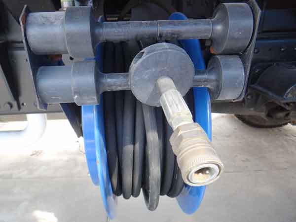 21)、側(cè)后部裝有機(jī)械式自動(dòng)卷繞沖洗卷盤,配20m高壓軟管和不同角度的清洗槍,可用于清洗車身和其它設(shè)備和設(shè)施。