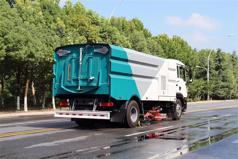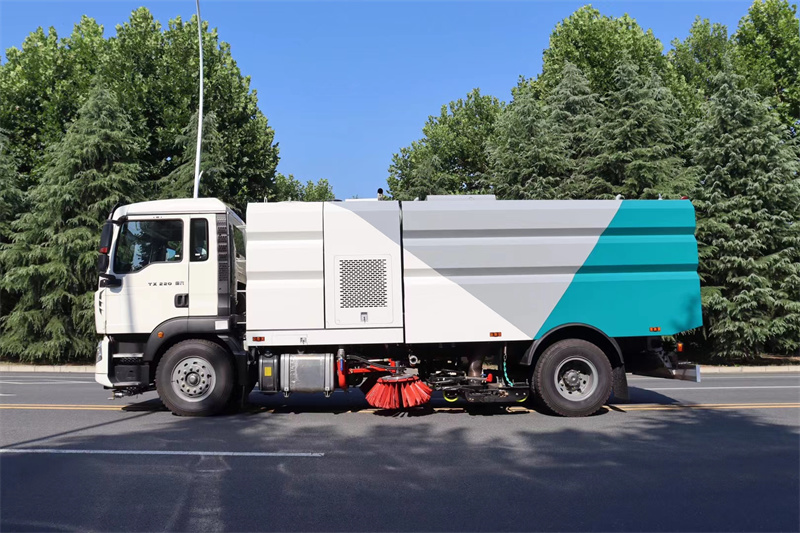 9、掃路車(chē),清掃車(chē),洗掃車(chē),除塵過(guò)濾系統(tǒng)設(shè)置三級(jí)氣力輸送除塵裝置。濾筒式過(guò)濾系統(tǒng)采用脈沖式除塵。除塵系統(tǒng)中設(shè)有氣壓開(kāi)關(guān)進(jìn)行壓差控制實(shí)現(xiàn)脈沖自動(dòng)除塵;