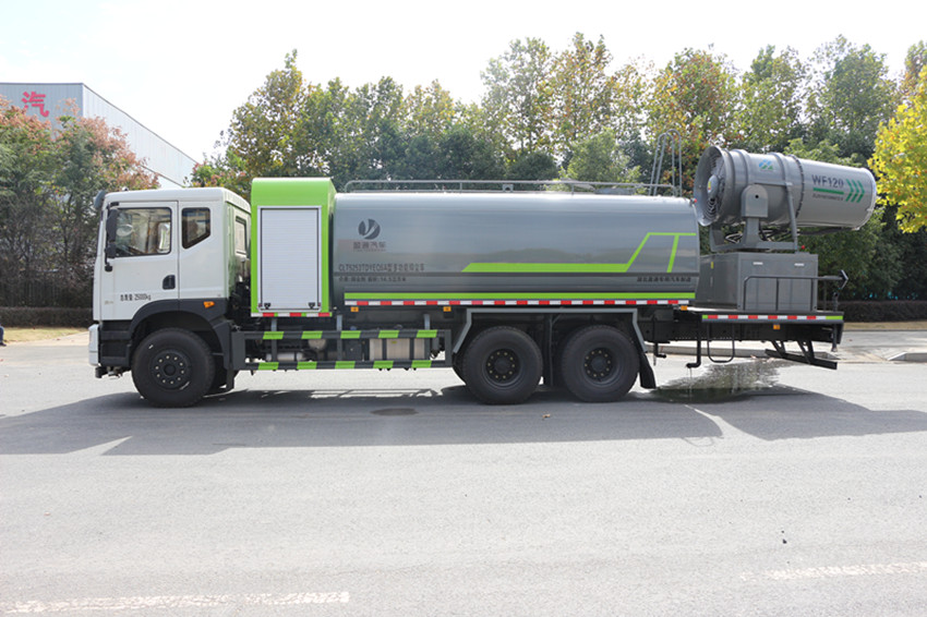 上裝配置:罐體容積15立方米,采用國(guó)標(biāo)5mm優(yōu)質(zhì)碳鋼板材制作(可選不銹鋼材質(zhì))自吸式灑水泵罐體內(nèi)設(shè)波浪板,大功率車載水泵,具備自吸自排功能;氣動(dòng)噴灑控制;配前沖、后灑、側(cè)噴、消防接口、自流閥、高位花灑、水炮及后工作平臺(tái),水炮可全方位旋轉(zhuǎn),最大射程30米,可連續(xù)調(diào)成直沖狀、大雨、小雨及霧狀;垂直吸程≧7米,灑水寬度≧14-16米,其他廠家標(biāo)配。