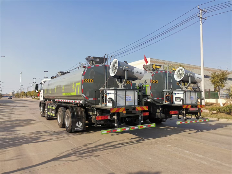 縱昂牌CLT5311TDYZZ6型多功能抑塵車標(biāo)配前噴(鴨嘴 ) 、后 對沖、后灑、側(cè)噴、后置式工作平臺(tái),平臺(tái)上配置綠化水炮(可 360°旋 轉(zhuǎn), 既可以調(diào)成柱狀,也可以調(diào)成霧狀),配備優(yōu)質(zhì)大功率專用灑水泵(可自吸 自 排,可從河里或池塘抽水到罐體),取力器,雜物過濾網(wǎng),消防接口,自流球閥 系統(tǒng)、取力器、球閥、濾網(wǎng)均為國家標(biāo)準(zhǔn)產(chǎn)品,主管道加粗,法蘭墊、法蘭盤 加厚,大通徑球閥。整體具備性能優(yōu)良安全可靠、效率高、流量大、維修方便 等特點(diǎn)。