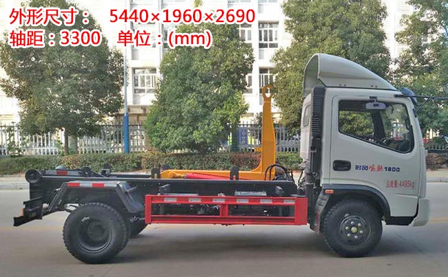 配套5~6立方米勾臂垃圾箱,高強(qiáng)度主勾臂,雙缸液壓,國(guó)產(chǎn)液壓油缸、油泵、多路閥(駕駛室外部操作)、尾部帶滾輪,箱體鎖緊裝置。