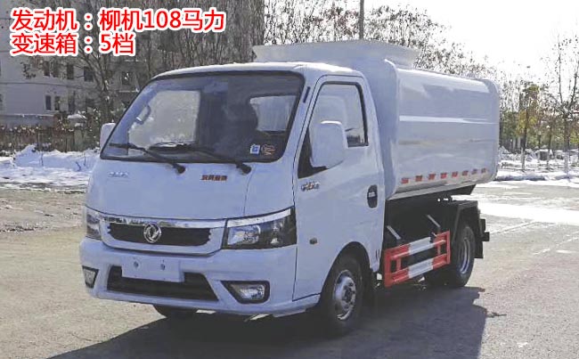 箱體容積3~4立方米,箱體材料為碳鋼,邊三底四,國(guó)產(chǎn)液壓系統(tǒng)、多路閥,側(cè)面掛桶提升機(jī)構(gòu),箱體雙杠液壓舉升卸料,駕駛室外部操作,后門(mén)手動(dòng)開(kāi)啟。