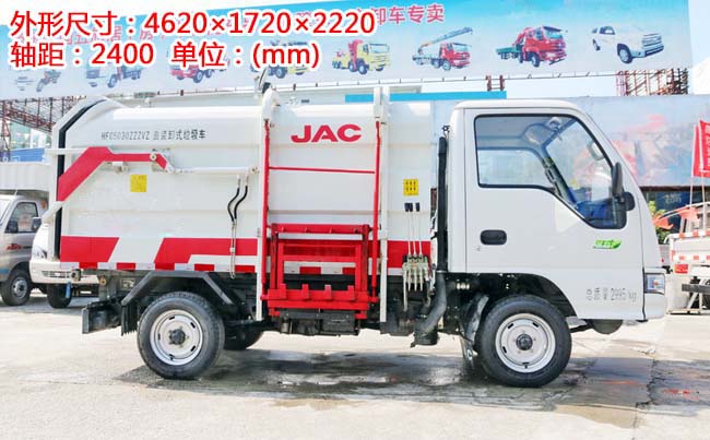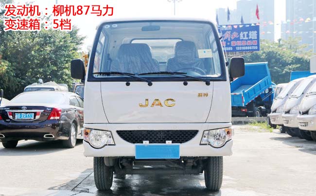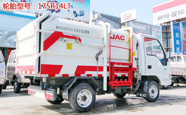 江淮康鈴X1掛桶式垃圾車,柳汽87馬力,5檔變速箱,1.4T后橋,2400軸距,175R14LT(后單胎),帶暖風、空調(diào)、可調(diào)方向盤、電預熱、電熄火、不翻轉、金屬漆。