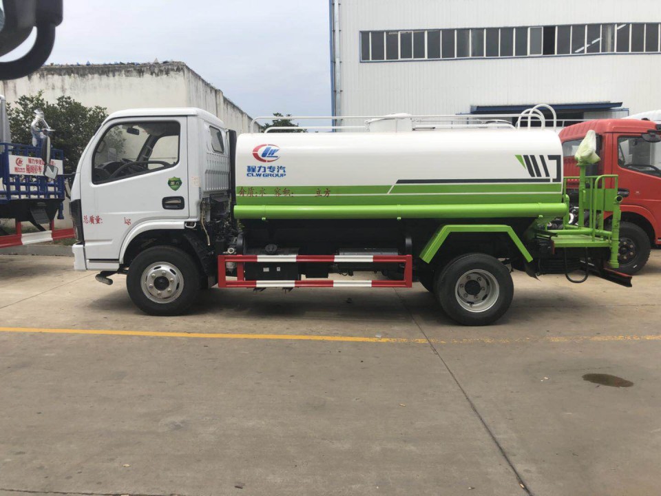 東風5噸灑水車采用東風多利卡底盤,白色可前翻駕駛室,朝柴102馬力國五發(fā)動機,5檔變速箱,軸距3308mm,1.8噸前橋,3.5噸后橋,7.00R16原廠鋼絲胎,原廠abs,帶方向助力,離合助力器,氣剎制動。
