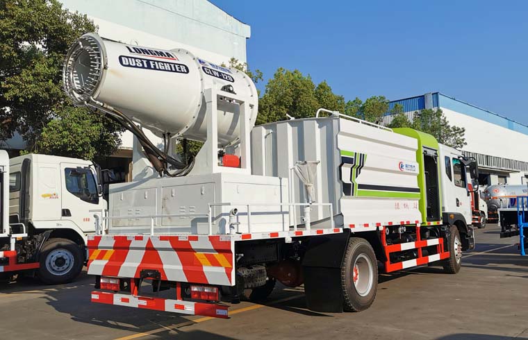 東風(fēng)霧炮車上裝配置:罐體容積10立方,罐體為方形罐,罐體內(nèi)部做防腐,罐體鋼板采用Q235碳鋼鋼材,整車具備灑水車的一切功能(前沖、后灑、側(cè)噴、平臺高炮),氣動球閥控制灑水功能,水位報警器,標配億豐60/90水泵,自流閥及消防接頭各1個、水管2根。后平臺安裝一臺80米霧炮。