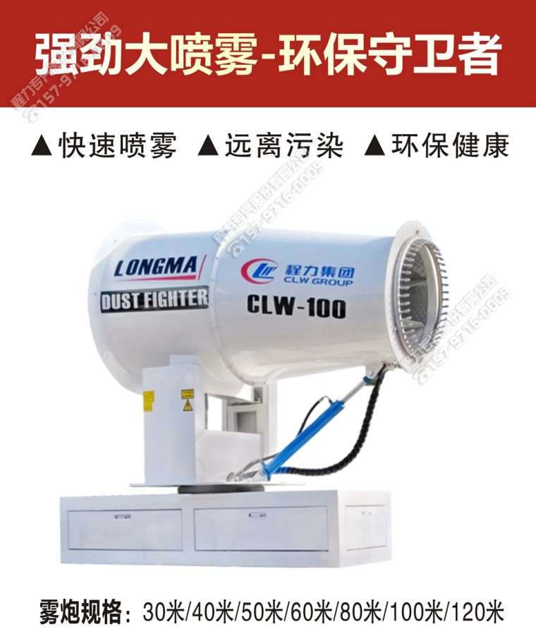 東風(fēng)霧炮車霧炮參數(shù):CLW-100型80米,副發(fā)電機組功率75(Kw),風(fēng)機功率18.5(Kw),不銹鋼多級離心泵功率7.5(Kw)。100米無線遙控操作,霧化距離80米(靜風(fēng)室內(nèi)距離)實際射程:(霧化射程會受濕度、溫度、風(fēng)速等各方面天氣因素的影響,另外天氣干燥地區(qū)一部分在空中被蒸發(fā)掉)。