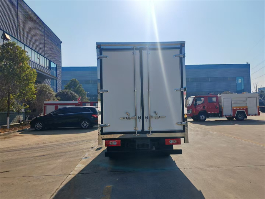 (3)廂體配件:廂體周邊鋁合金包邊,不銹鋼包角,不銹鋼門鎖鉸鏈,不銹鋼門框及合頁(yè),廂體內(nèi)節(jié)能LED照明燈,后雙開門,側(cè)邊單開門。