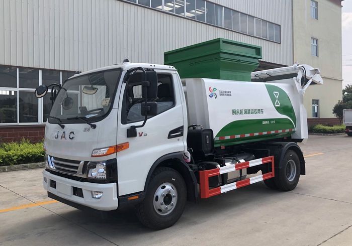 餐廚垃圾處理方式_小型餐廚垃圾車價(jià)格;側(cè)裝提升機(jī)構(gòu),可配120L或240L的桶,罐體采用耐油污,酸堿密封圈,同時(shí)后封蓋采用油缸鎖緊裝置;廚垃垃圾車采用304不銹鋼罐體或Q235碳鋼罐體,在罐體的上部設(shè)有進(jìn)料箱蓋,使整車美觀大方,而且防止垃圾的傾灑。側(cè)面裝有提升機(jī)構(gòu),極大的減輕了操作人員的工作