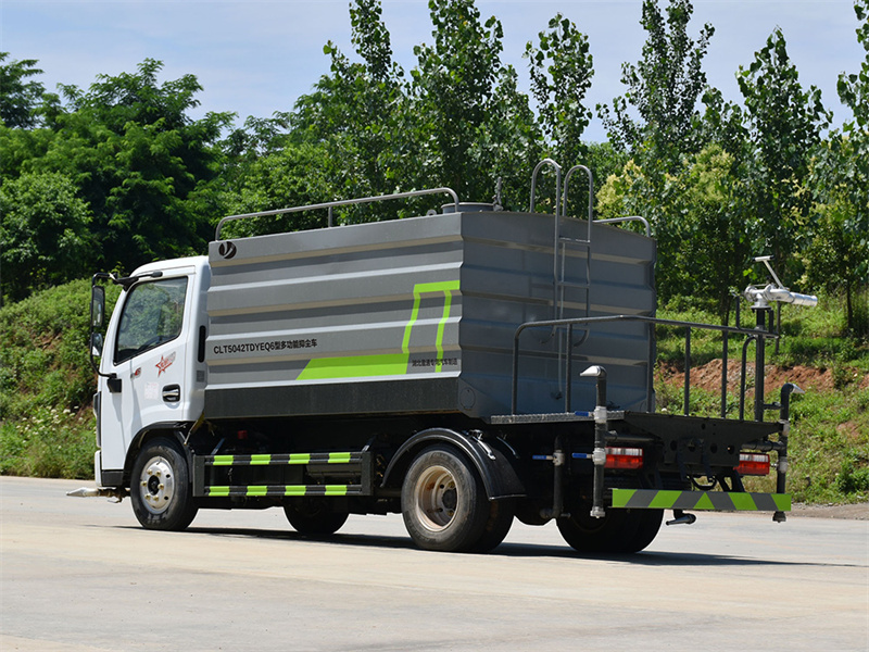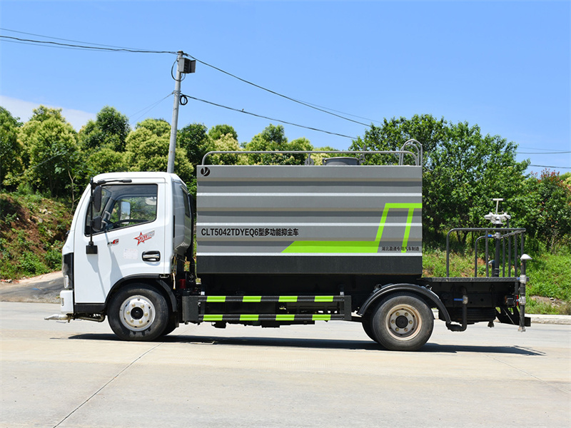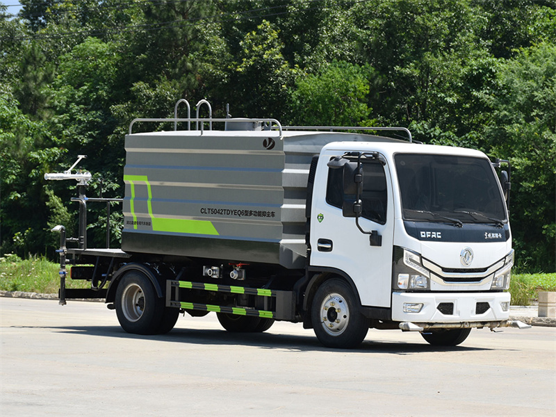 東風(fēng)7方藍牌灑水車產(chǎn)品簡述:縱昂牌 CLT5042TDYEQ6 型多功能抑塵車標配前噴(鴨嘴)、后對 沖、后灑、側(cè)噴、后置式工作平臺,平臺上配置綠化水炮可 360 °旋轉(zhuǎn),既可 以調(diào)成柱狀,也可以調(diào)成霧狀),配備優(yōu)質(zhì)大功率專用灑水泵(可自吸自排, 可從河里或池塘抽水到罐體),取力器,雜物過濾網(wǎng),消防接口,自流球閥系統(tǒng)、 取力器、球閥、濾網(wǎng)均為國家標準產(chǎn)品,主管道加粗,法蘭墊、法蘭盤加厚,大通徑球閥。整體具備性能優(yōu)良安全可靠、效率高、流量大、維修方便等特點
