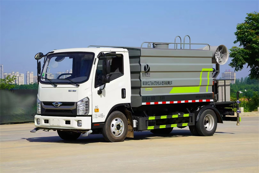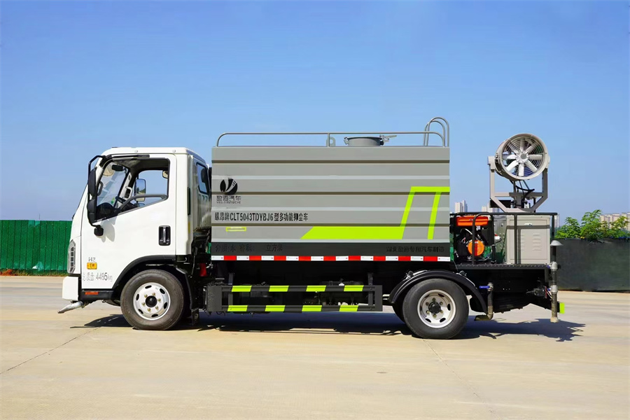 福田7方藍(lán)牌霧炮灑水車產(chǎn)品簡(jiǎn)述:縱昂牌 CLT5043TDYBJ6 型多功能抑塵車標(biāo)配前噴(鴨嘴)、后對(duì) 沖、后灑、側(cè)噴、后置式工作平臺(tái),平臺(tái)上配置綠化水炮(可 360°旋轉(zhuǎn),既可 以調(diào)成柱狀,也可以調(diào)成霧狀),配備優(yōu)質(zhì)大功率專用灑水泵(可自吸自排, 可從河里或池塘抽水到罐體),取力器,雜物過(guò)濾網(wǎng),消防接口,自流球閥系統(tǒng)、 取力器、球閥、濾網(wǎng)均為國(guó)家標(biāo)準(zhǔn)產(chǎn)品,主管道加粗,法蘭墊、法蘭盤加厚, 大通徑球閥。整體具備性能優(yōu)良安全可靠、效率高、流量大、維修方便等特點(diǎn)。