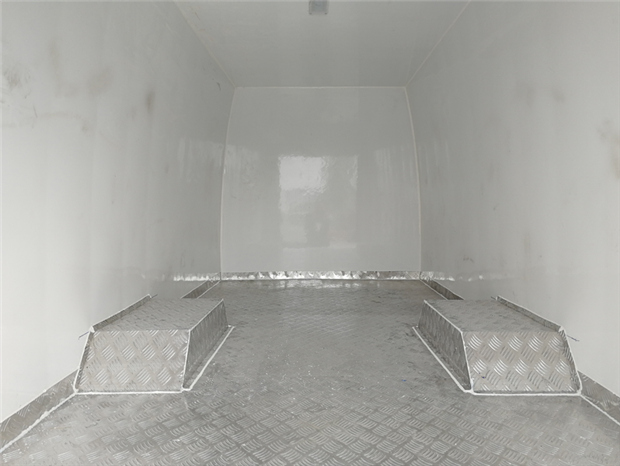 依維柯長軸冷藏車車廂配置:廂體采用內(nèi)外優(yōu)質(zhì)玻璃鋼板,內(nèi)膽圓弧式廂體,地板為鋁花紋板,底板和四周廂板加裝通風(fēng)槽,不銹鋼門框,鎖件。