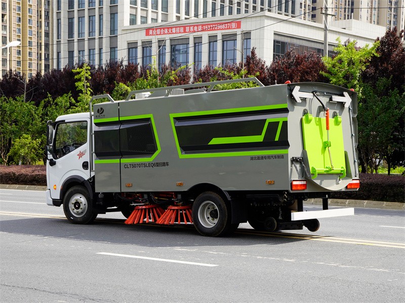1. 采用吸掃混合的方式收集垃圾,濕式除塵、電液控制,液壓傾翻卸料的作業(yè)方式對路面進行清掃作業(yè)。