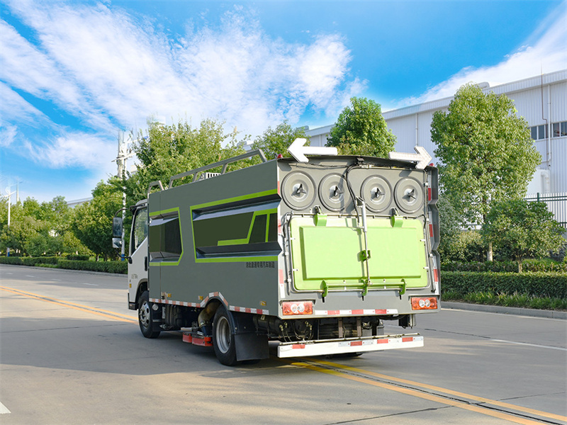 9.集塵箱自主研發(fā)三級降塵技術(shù),采用重力除塵,慣性除塵,濾網(wǎng)除 塵,并結(jié)合脈沖除塵技術(shù),既能將灰塵吸凈,又能防止濾網(wǎng)堵塞。10. 車輛后部集塵箱安裝手動吸口,可連接吸塵管直接手動操作。
