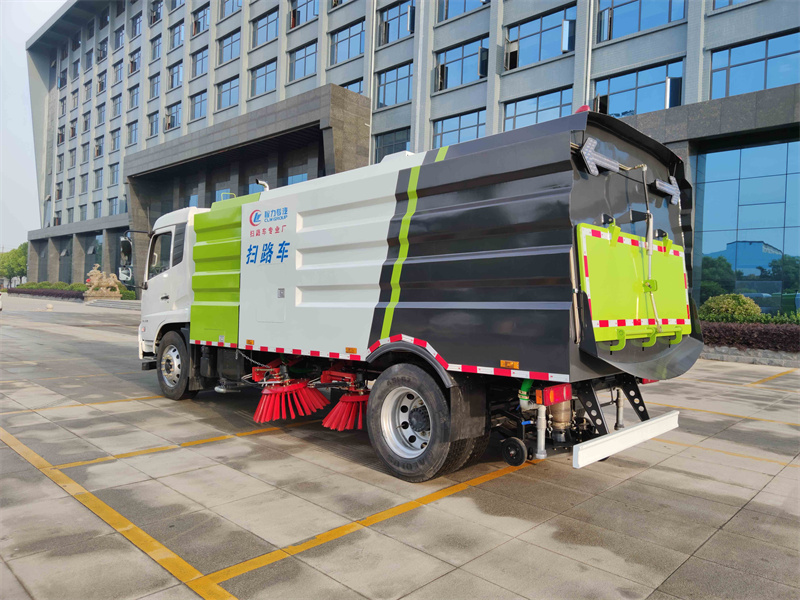 1、清掃車采用吸掃結(jié)合的方式收集垃圾,濕式除塵、電液控制,液壓傾翻卸料的作業(yè)方式對路面進行清掃作業(yè)。