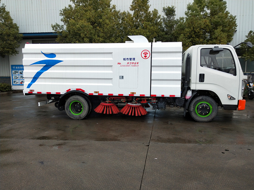 1、掃路車采用吸掃結(jié)合的方式收集垃圾,濕式除塵、電液控制,液壓傾翻卸料的作業(yè)方式對路面進行清掃作業(yè)。