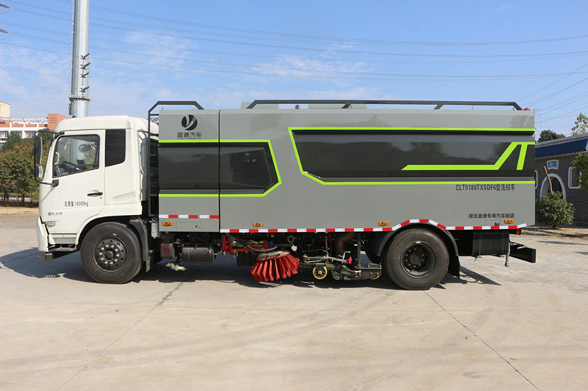 1.CLT5180TXSD6型洗掃車適用于城市道路、高速公路、廣場(chǎng)、機(jī)場(chǎng)、碼頭、遂道、橋梁、隔離墻避、路緣和路緣石立面的機(jī)械化清洗、清掃、噴霧降塵等清潔作業(yè)。具有路面清洗、路面清掃、路緣清洗、路緣和路緣石立面洗刷、低壓沖洗、噴霧除塵等多功能。有“全洗掃”、 “右洗掃”、 “全掃”、 “右掃”4種作業(yè)模式可選擇。選擇“全洗掃”模式清洗廣場(chǎng)和路面,清洗效率高效果好,洗凈率達(dá)90%以上。選擇“左洗掃”或“右洗掃”模式清洗路面和路緣、洗刷路緣石立面。需要進(jìn)行路面清掃或路面保潔作業(yè)時(shí),可選擇掃路模式。需要噴霧除塵時(shí),可開啟噴霧裝置,進(jìn)行噴霧除塵作業(yè)?梢韵駷⑺囈粯訉(duì)路面進(jìn)行低壓沖洗作業(yè)。