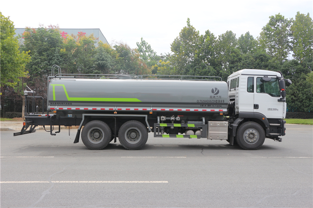 | 灑水車整車說明: | ABS型號:4460046300;ABS生產企業(yè):威伯科(上海)管理有限公司;選裝描述:隨底盤選裝駕駛室,選裝EBS,EBS系統(tǒng)控制器生產企業(yè)/型號為威伯科(上海)管理有限公司/EBS3;側后防護情況:側、后防護材料均為Q235碳鋼,連接方式:螺栓連接,后部防護截面尺寸(mm):120×50,后部防護離地高度(mm):480;罐體有效容積(立方米)、罐體外形尺寸(mm):罐體有效容積:14.7立方米;罐體外形尺寸(長×長軸×短軸)(mm):6500×2360×1400;專用功能及裝置:該車主要用于城鄉(xiāng)園林綠化,路面噴灑,除塵和降溫;主要裝置為水罐及噴灑裝置; | ||