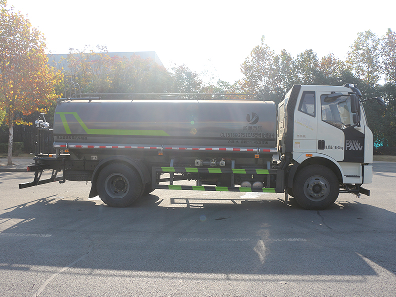 標(biāo)準(zhǔn)配置灑水車主要裝備有:前沖(沖洗公路路面)、后灑(公路路面養(yǎng)護(hù))、側(cè)噴、高位側(cè)花灑(路邊綠化帶優(yōu)化);后工作平臺高壓水炮,可調(diào)節(jié)成柱狀,射程≥28m;也可調(diào)節(jié)成霧狀,射程≥30米,水泵自吸高度:≤7m,灑水寬度:≥15m。側(cè)防護(hù)網(wǎng),自流閥,消防接頭。灑水車水泵為常壓水泵,功能可以抽水、排水。另外根據(jù)用戶要求,可加消防泵、噴霧機(jī)、農(nóng)藥卷盤、農(nóng)藥柱塞泵。罐內(nèi)可以做防腐防銹、電磁閥氣動閥自動放水等****,以滿足不同用戶需求。