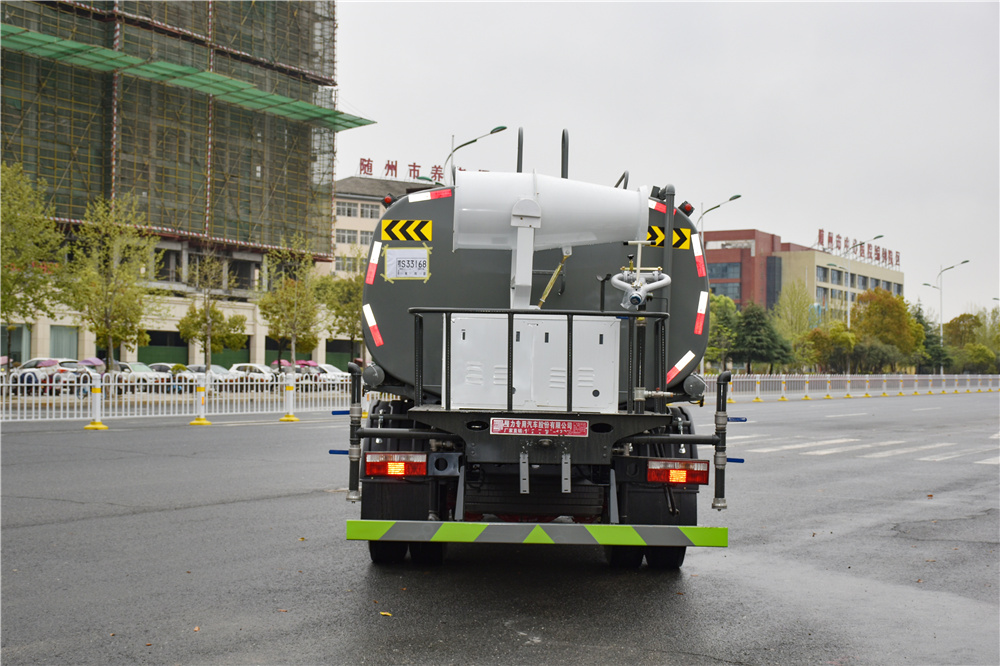 用功能配置:罐體實(shí)際容積約為12--14--16立方米,采用武鋼優(yōu)質(zhì)碳鋼板卷壓成型,自動(dòng)焊接。配備專(zhuān)用灑水泵,自吸自排,前噴后灑、側(cè)噴、后工作平臺(tái)及灑水高壓炮。灑水泵自吸高度為6米左右,整車(chē)灑水寬度14米左右,后工作平臺(tái)高壓水炮上下左右360°旋轉(zhuǎn)可調(diào)成:直沖狀、大雨、中雨、霧狀、有效射程≥28米,整車(chē)帶接頭、水位計(jì),自流閥。后工作平臺(tái)主管路帶1寸澆花接口,附送2根3米水管,1個(gè)爬梯,兩側(cè)及后保險(xiǎn)杠。