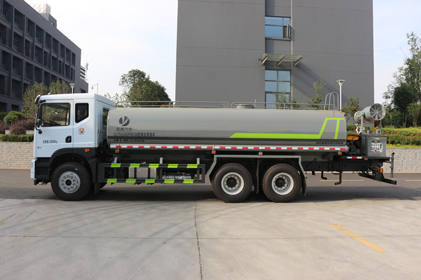 罐體采用標(biāo)準(zhǔn)Q235碳鋼制作,罐體自動焊,裝水20噸,配大功率專用灑水車,可自吸自排,前沖后灑,側(cè)噴,高位花灑,主管道加粗,大通徑球閥,直通球閥式消防接口,帶后工作平臺,沖孔平臺,帶高炮。(可選裝大平臺,可裝30米霧炮降塵)。環(huán)保,免征齊全。