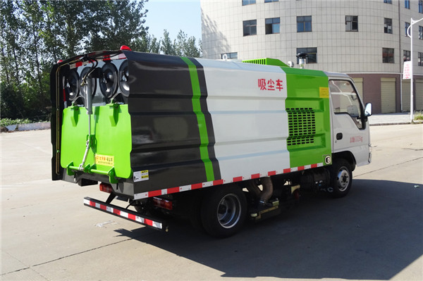 該吸塵車是采用江淮型國五二類原廠汽車底盤改裝,加裝副發(fā)動(dòng)機(jī)、風(fēng)機(jī)、清水箱、垃圾箱、中置吸盤,工作視頻探頭,自動(dòng)脈沖清理功能,液壓系統(tǒng)、專用裝置電控系統(tǒng)和副車架等改裝而成。